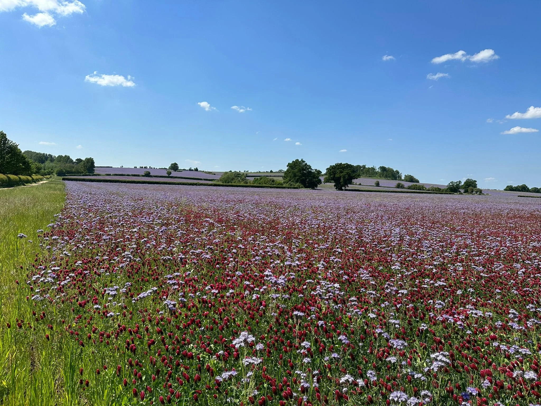6m-wide grass margins around fields help manage water runoff and provide habitats for wildlife, including ground-nesting birds and wetland species. Species-rich grass meadows will support birds, bees, butterflies, moths, and other insects. Leaving the grass cutting as late as possible is designed to assist pollinators and ground nesting birds.